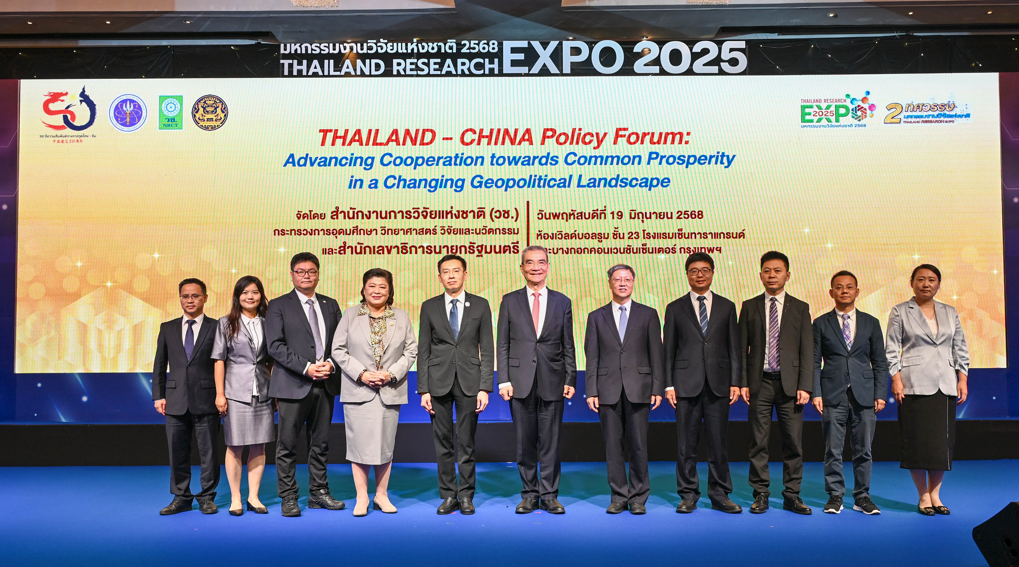 Cooperation towards Common Prosperity in a Changing Geopolitical Landscape" เนื่องในโอกาสครบรอบ 50 ปี ความสัมพันธ์ทางการทูตระหว่างไทย-จีน ภายในงานมหกรรมงานวิจัยแห่งชาติ 2568 (Thailand Research Expo 2025) จัดโดยสำนักงานการวิจัยแห่งชาติ (วช.) กระทรวงการอุดมศึกษา วิทยาศาสตร์ วิจัยและนวัตกรรม ร่วมกับสำนักเลขาธิการนายกรัฐมนตรี ซึ่งมี ดร.วิภารัตน์ ดีอ่อง ผู้อำนวยการสำนักงานการวิจัยแห่งชาติ กล่าววัตถุประสงค์การจัดงาน ณ ห้อง World Ballroom ชั้น 23 โรงแรมเซ็นทาราแกรนด์และบางกอกคอนเวนชันเซ็นเตอร์ เซ็นทรัลเวิลด์ กรุงเทพฯ